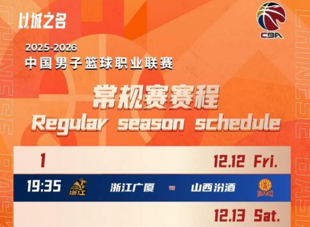 CBA25-26赛季会在12月12日打响,比上赛季的10月12日开赛晚了两个月。