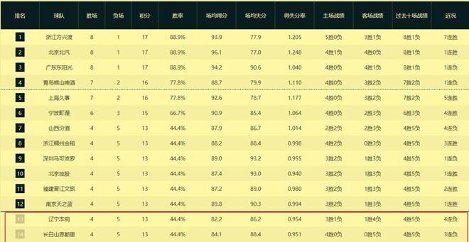 辽篮这个赛季前9场比赛取得4胜5负的成绩。九轮过后一看排名竟然已经跌出了前十二,排在第13名,竟然跟第14名的吉林老铁成了难兄难弟,简直让人大跌眼镜啊!