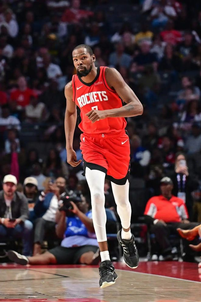 火箭看中的,正是他无可替代的 “硬解能力”。这支球队虽有 5 年 1.85 亿续约的内线核心申京,也有防守强悍的阿门,但关键时刻缺乏一锤定音的终结者 —— 而杜兰特正是这一角色的完美答案。