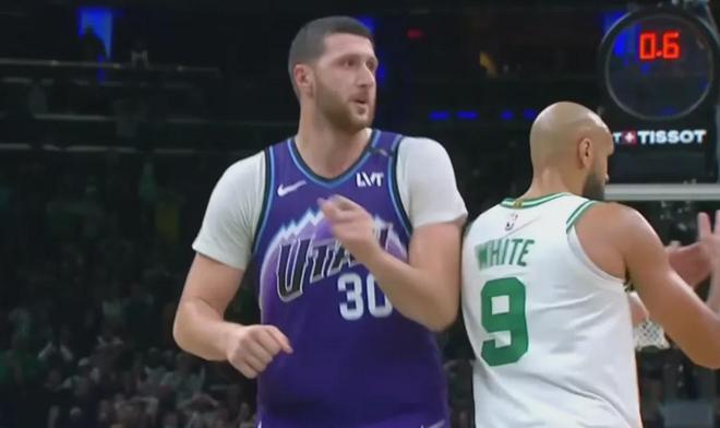 爵士跟凯尔特人打到了比赛最后关头,一直没有被对手甩开,甚至在还剩不到3分钟时领先7分。
