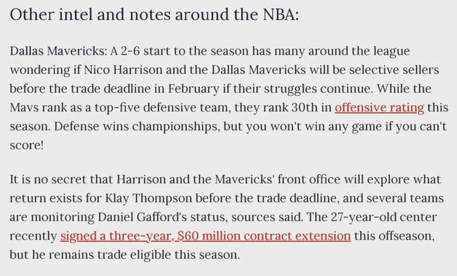 去年夏天,汤普森因不满勇士的续约报价,最终接受了小牛的合同,先签后换来到达拉斯。