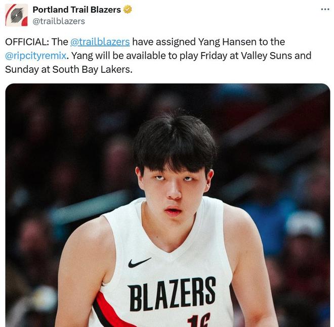 在这种情况下,开拓者队官方宣布第三次将杨瀚森下放到G联盟的混音队,与此前单纯被下放进行个人加练不同,这一次杨瀚森算是正式被下放,将首次参加G联赛的两场比赛,分别对阵山谷太阳和南湾湖人。