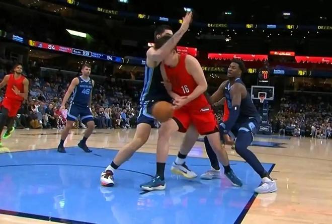 在最近对阵灰熊队的比赛中,杨瀚森连续两个低位单打强吃周志豪连得四分,获得了球队队友的尊重,也获得了球迷的认可,也看到了他将来在NBA站稳脚跟的可能性。只是没有想到,也许是这两个球直接把周志豪给打怒了,在下一个回合的防守中,周志豪直接拉拽杨瀚森,然后打在了他的脸上,导致杨瀚森倒地不起,非常的痛苦。