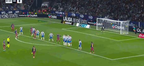第63分钟,拉菲尼亚任意球攻门,皮球击中人墙偏出球门