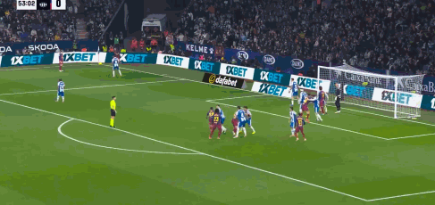 第54分钟,巴萨开出角球,孔德头球攻门被扑出