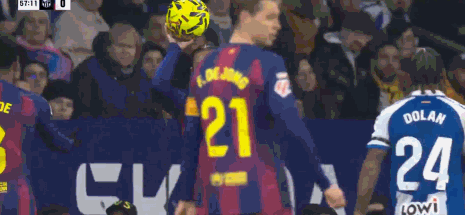 第58分钟,有点滑稽,拉菲尼亚手滑导致掷界外球违例