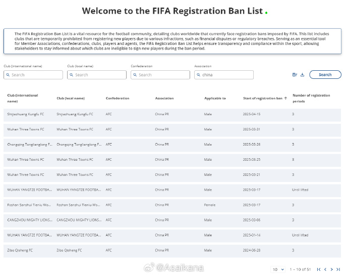 根据FIFA公示,曾在4月17日生效的上海申花转会注册禁令现已被消除。