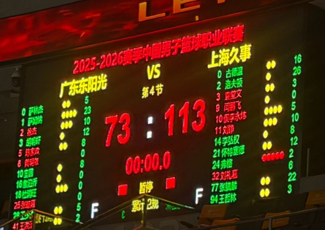 在40分钟一场的比赛里,落后26分进入最后20分钟的争夺,基本上是不可能翻盘的。广东男篮也是越打越差,在第三节仍然找不到什么办法,在第四节落后接近50分,最终以73比113惨败给了上海男篮足足40分,场面确实是非常难看。