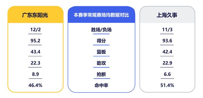 两队数据对比