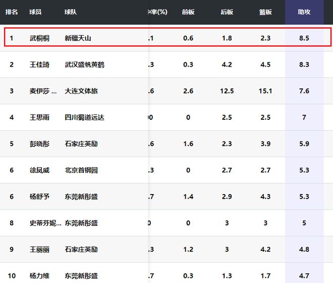 武桐桐目前是联赛的助攻王,此外她的场均得分排名联赛第19名,在本土球员中排名第二,仅次于场均得到17.3分的杨舒予。也就是说,在本赛季WCBA联赛的本土球员中,武桐桐得分第二,助攻第一,这都不能够入选国家队吗?