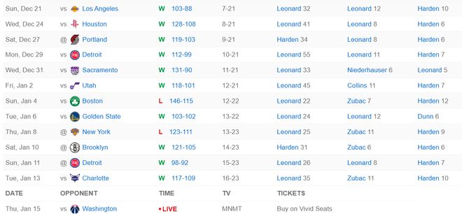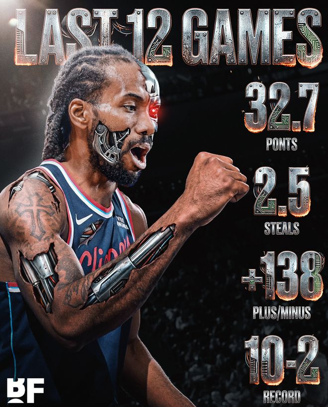 快船过去13场比赛取得11胜2负,小卡的正负值也继续提升到+145还是联盟第一,莱昂纳德的场均得分也提升到场均32.72分也是联盟第一,他的个人能力真的强。