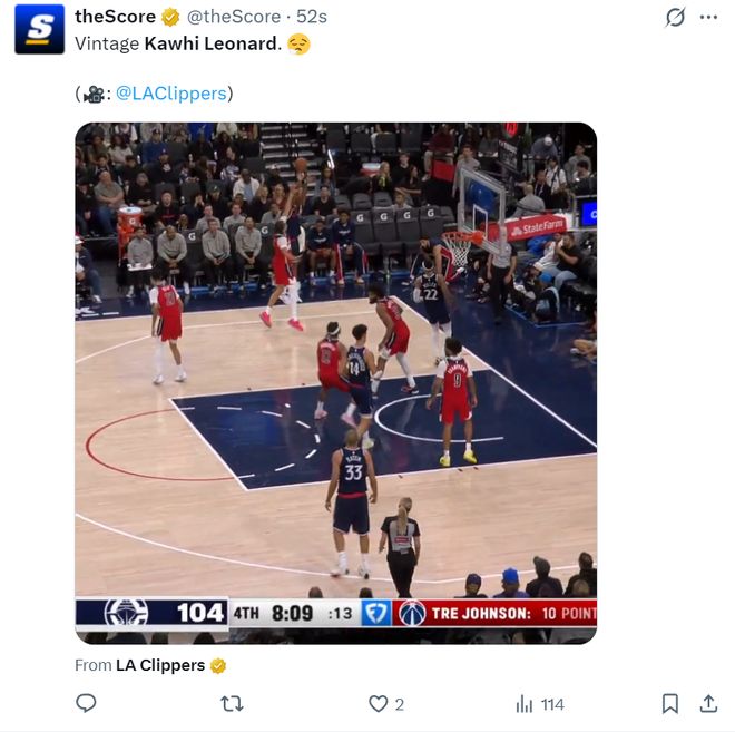北京时间1月15日,快船以119-105击败奇才拿到四连胜。这场比赛科怀-莱昂纳德在手感没有那么出色的情况下依旧砍下30+(连续两场30+),因为他的外线比中投还准,本赛季小卡增加外线的出手后效果非常之好,此役命中7个三分球追平生涯最高。