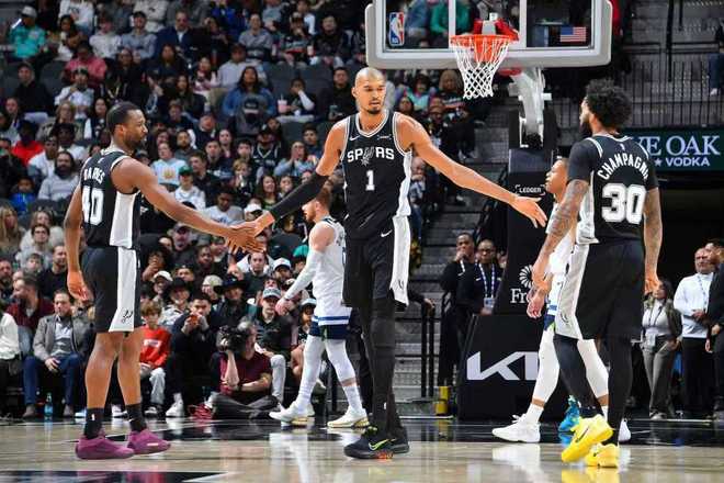 马刺:文班亚马39分9篮板,福克斯25分12助攻,凯尔登20分。森林狼:爱德华兹9记三分55分生涯新高,麦克丹尼尔斯23分5篮板5助攻,兰德尔17分10篮板,迪文琴佐11分,贝兰热10分。