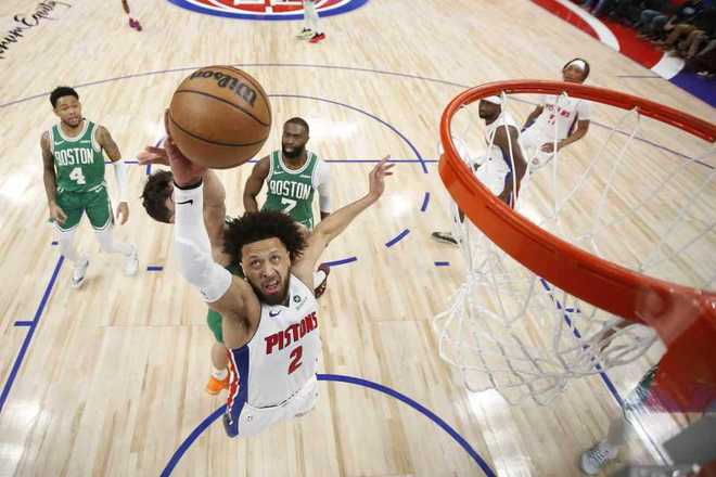 次节比赛,活塞在28-33落后情况下,打出一波9-0攻势反超4分,活塞继续扩大42-37领先优势。凯尔特人连得5分追平,活塞连得5分,布朗率队追到差3分,活塞内外开花一波9-0攻势扩大58-46领先优势。凯尔特人一波5-1攻势缩小差距,活塞单节33-22净胜11分,上半场结束活塞59-51反超凯尔特人。前两节比赛,活塞三分18中4,杜伦11+7、哈里斯13分与坎宁安7中1得到8分7助攻;凯尔特人三分22中6,布朗16中6得到19+6。