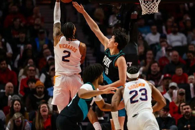 第四节仅仅5分钟,杨瀚森就贡献了4分1篮板1助攻,表现非常抢眼,这可是正儿八经打得太阳队的主力,当时可不是无悬念时间。后来,开拓者比分逐渐被拉开,比赛悬念失去之后,练兵时间,杨瀚森再次获得上场机会,一上来就有表现,先是在篮下封盖理查兹,然后再秀脚步,篮下一个转身,直接上空篮命中,紧接着,他连续两次助攻西索科吃饼,随后在被封盖后,反应迅速,拿到皮球继续打,完成2+1,罚球也进,太厉害了!