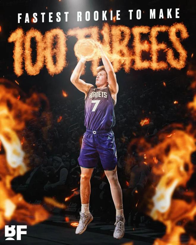 这是克努佩尔生涯的第29场比赛,算上本场投进的5记三分,他目前已经投进了104三分,由此成为NBA历史上最快达成100记三分的新秀,此前的纪录保持者是马尔卡宁的41场,克努佩尔将这个纪录大幅提升。