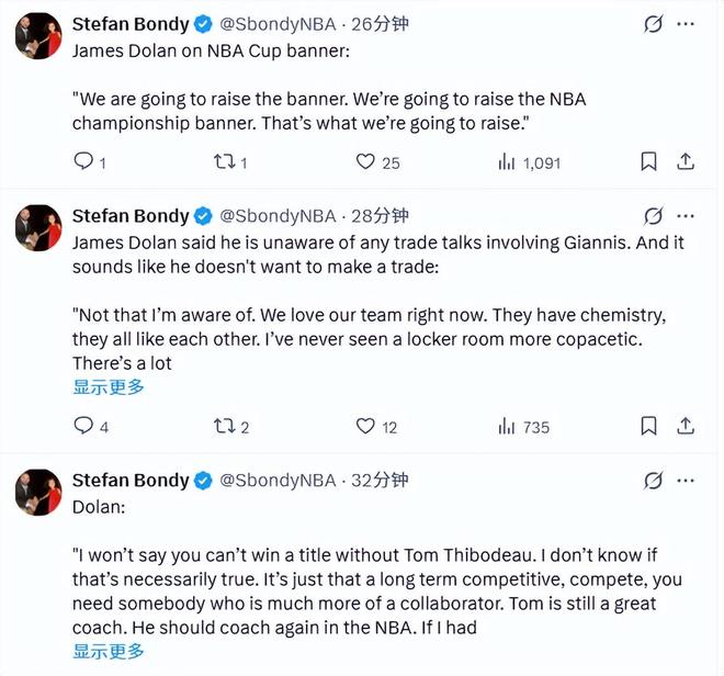 此前的交易流言中,尼克斯经常和字母哥联系在一起。谈到相关话题时,多兰表示,他并不知晓任何涉及字母哥的交易谈判,而且听他的口气,球队根本无意推动交易。